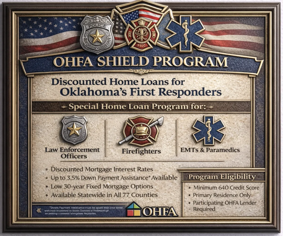 • State down payment assistance through Oklahoma Housing Finance Agency programs