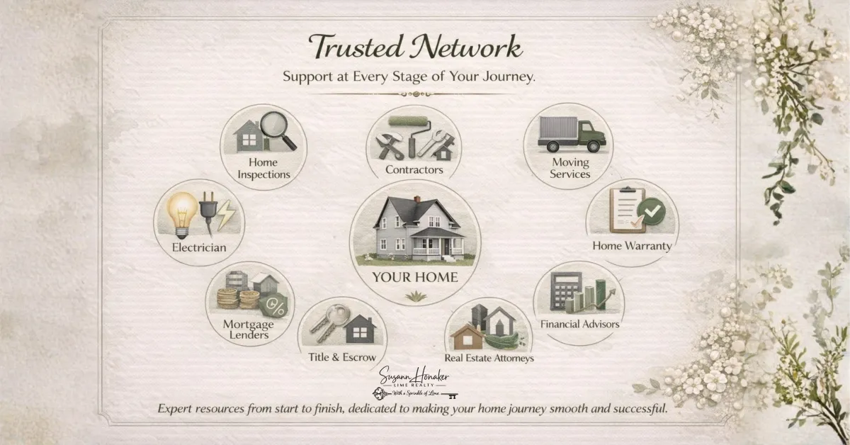 From home inspectors and lenders to foundation repair, HVAC, electrical, and title companies, these are the people I trust to help protect your investment and make your experience smooth from start to finish.
